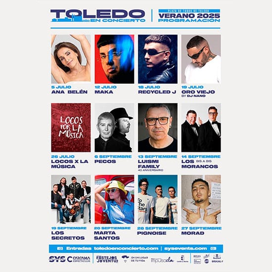 Ciclo Toledo en Concierto 2025. Los meses de julio y septiembre en la Plaza de Toros de Toledo. Ana Belén, Pecos, Maka, Morad, Recycled J …
